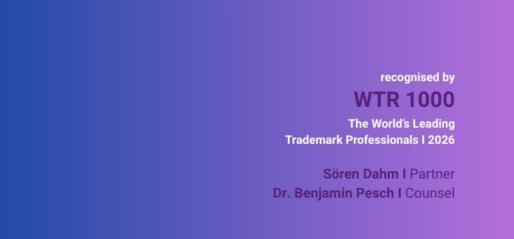 World Trademark Review hat das WTR 1000 Ranking 2026 veröffentlicht. Wir freuen uns sehr, dass unser Partner Sören Dahm und unser Counsel Dr. Benjamin Pesch in der diesjährigen Ausgabe ausgezeichnet wurden.