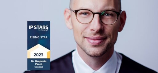 Managing IP hat seine diesjährigen Rising Stars Rankings 2023 veröffentlicht. Wir freuen uns sehr, dass unser Counsel Dr. Benjamin Pesch zum dritten Mal in Folge als „Rising Star“ ausgezeichnet worden ist.