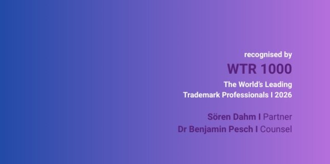 World Trademark Review has published the WTR 1000 Ranking 2026, and we are pleased to announce that our Partner Sören Dahm and Counsel Dr Benjamin Pesch have been recognised in this year’s edition.